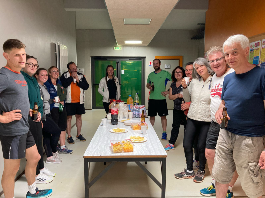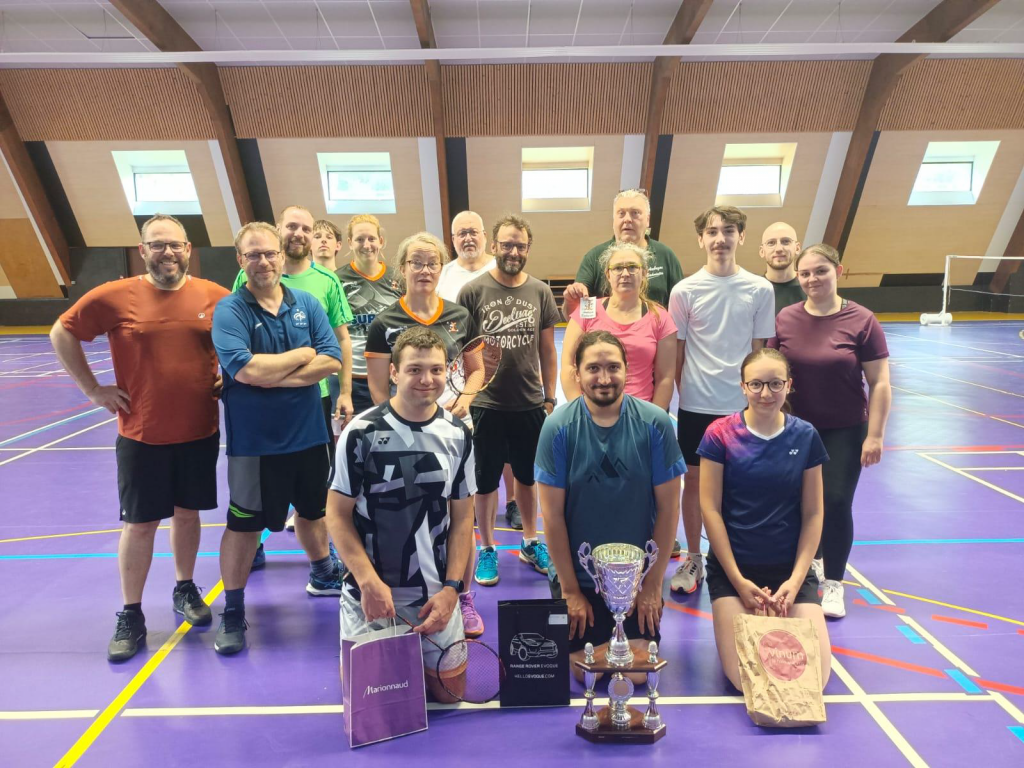 La saison a été rythmée pour les adultes par de nombreuses animations qui ont renforcé les liens au sein du club. Nous avons comme chaque année eu droit à des entrainements « Galette des rois » ou encore « Casse croûte », organisé notre traditionnel tournoi interne le 24 mai 2025, où Thomas a remporté le trophée qui sera remis en jeu l’an prochain, et bien sûr, notre grand tournoi seniors en double et mixte en mars 2025 a été un véritable succès avec des tableaux pleins.