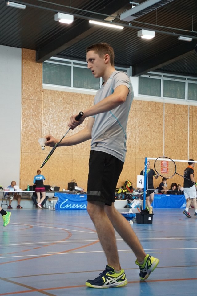 Alex, nouveau responsable de créneaux, en pleine concentration lors du tournoi de Verneuil Bad.