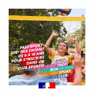 Bonjour, La pratique d’une activité sportive régulière est essentielle pour la santé et le bien-être des enfants. C’est pourquoi, l’Etat met en place le Pass’Sport pour favoriser l’inscription des enfants dans une association sportive à la rentrée scolaire 2021. 50 € seront automatiquement déduits du montant de votre inscription ou réinscription (à condition qu’elle intervienne …