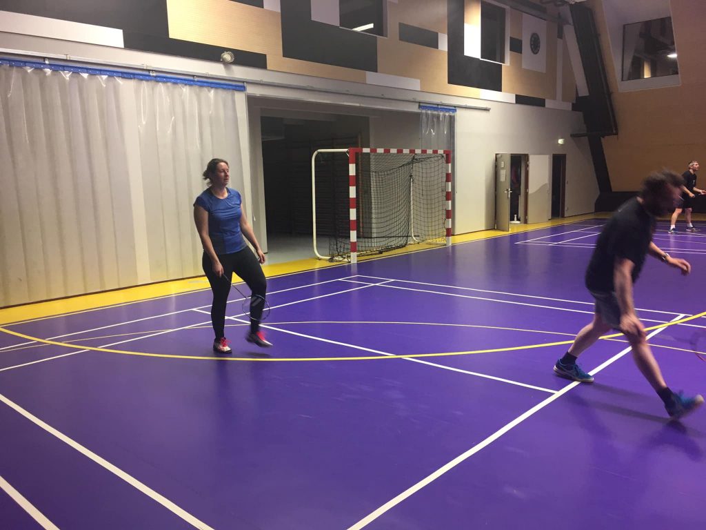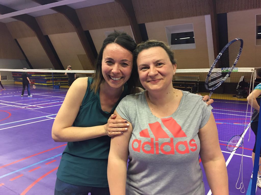 Poursuite de la rencontre avec l’entrée en lice des joueuses et joueurs de double. Le double dame avec Charlotte et Susie et le double homme constitué de Stéphane et François Xavier. Duo de choc au programme. Match très serré. Les filles remportent le premier set de justesse (22-20) tandis que les hommes le perdent sur le même score (20-22).