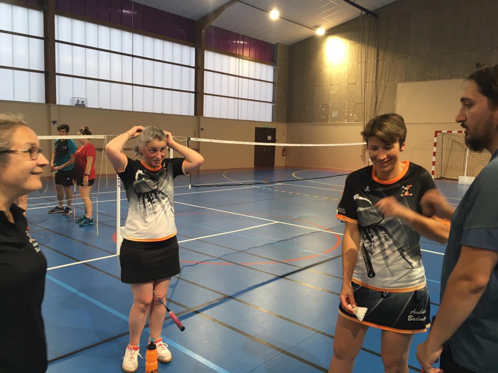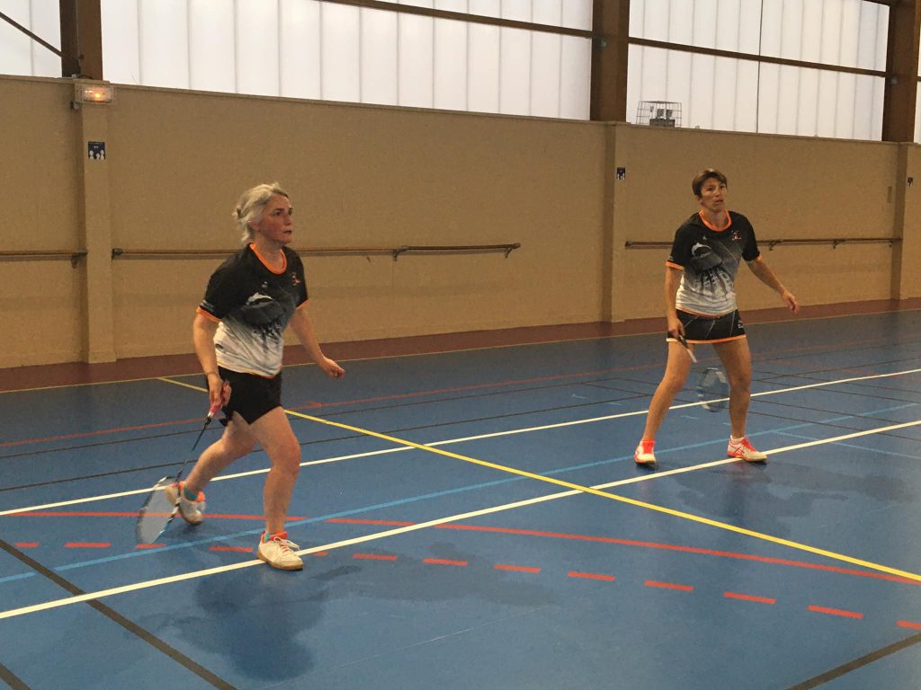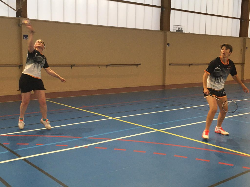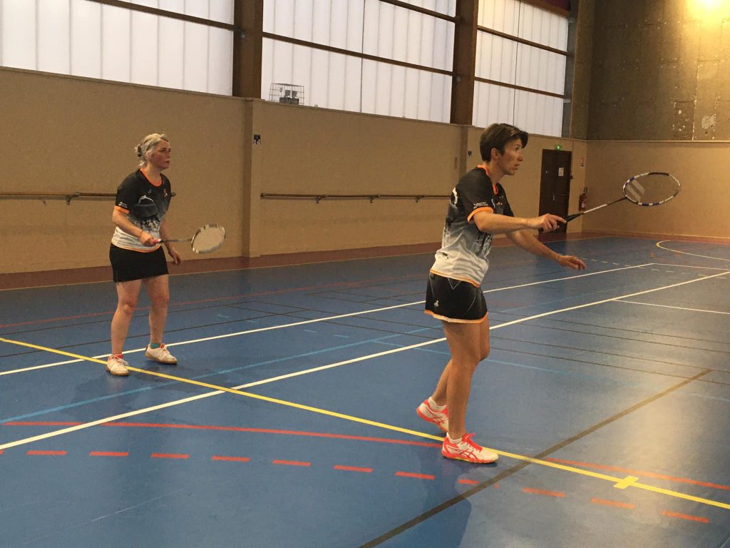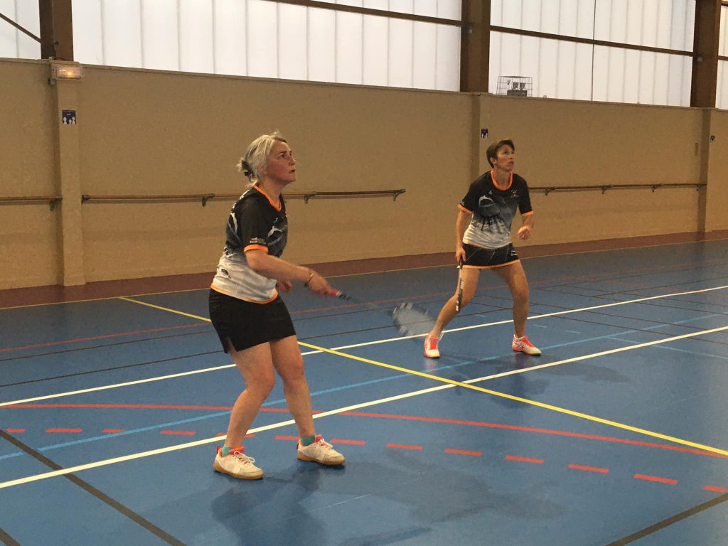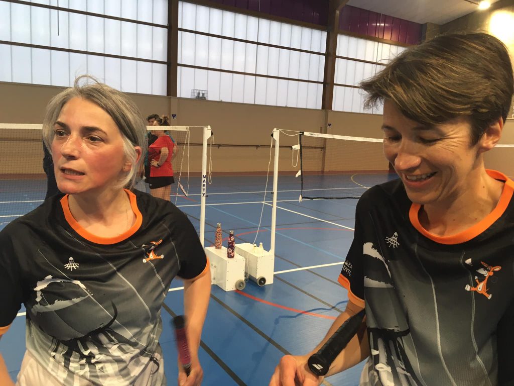 Place aux doubles avec Carine/Marie-Laure et Thomas/Seb. De retour de blessure, Marie-Laure entamait la rencontre tambour battant avec sa coéquipière en remportant le premier set face à deux joueuses expérimentées (19-21). Mais à domicile, Saint Sulpice se rebiffait et retournait la situation en empochant le deuxième set (21-18). Place à une troisième set décisif. Longtemps au coude à coude, le duo orange et noir prenait le dessus en fin de match (14-21).