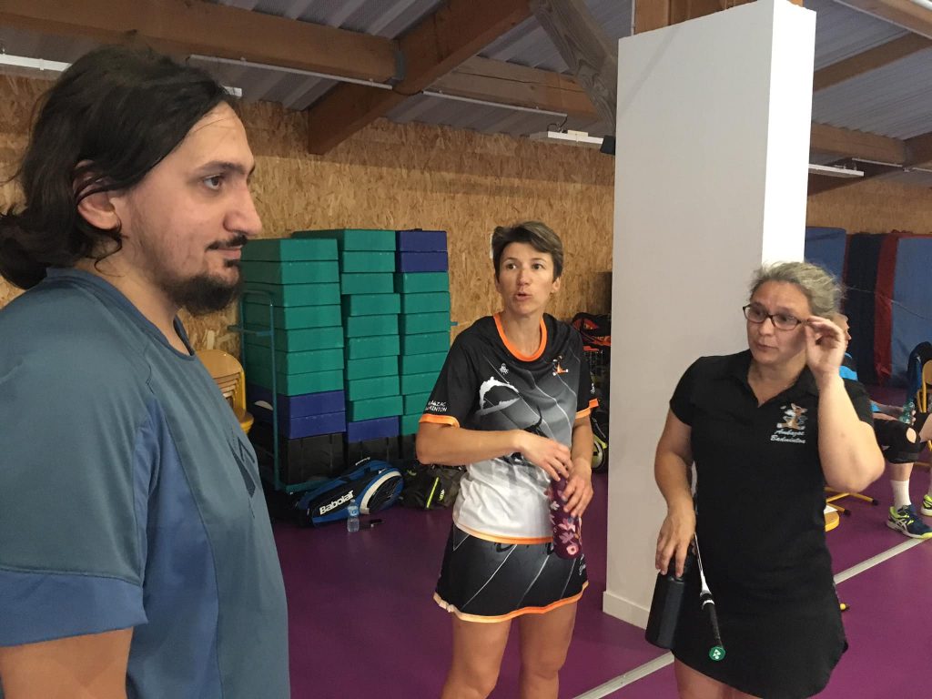 Equipe quasiment au complet avec la présence de 4 filles (Carine, Nadège, Marie-Laure (de retour de blessure) et Angélina (nouvelle venue et récente gagnante du tournoi mixte de Boisseuil)) et 3 garçons (Seb, Romain et Thomas (récent finaliste du tournoi de Boisseuil). On salue notre ami Lorenzo qui n’a pas pu faire le déplacement pour la dernière journée.